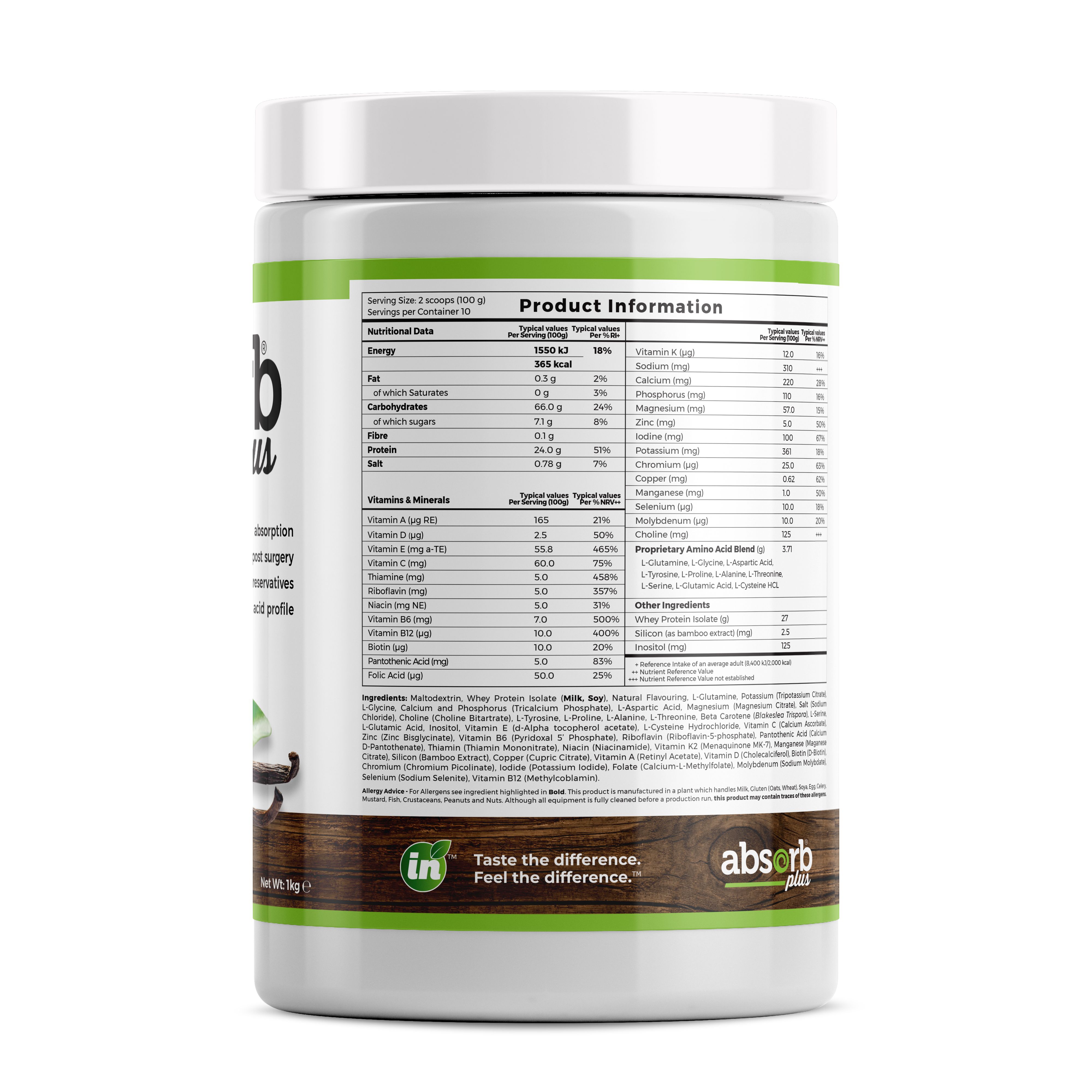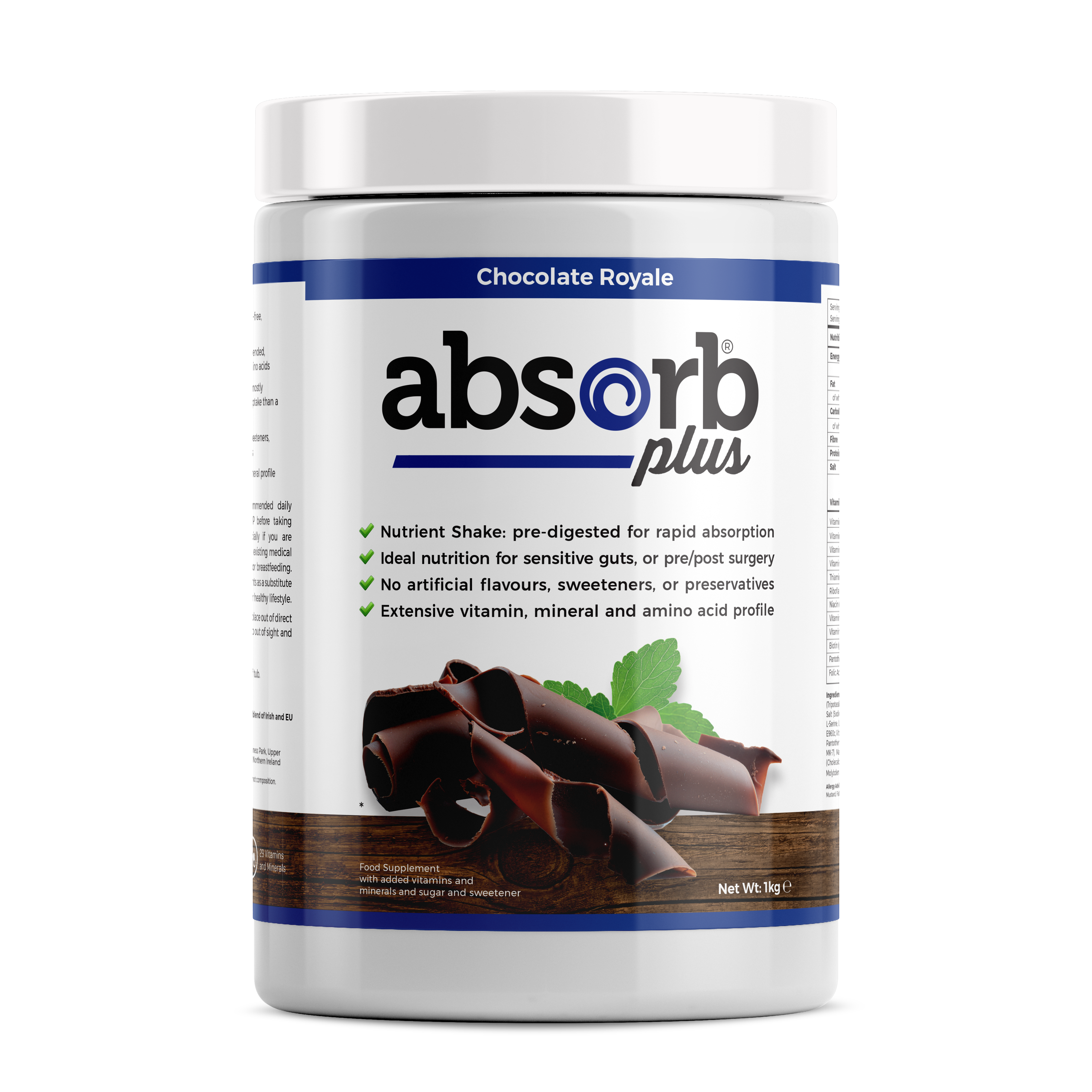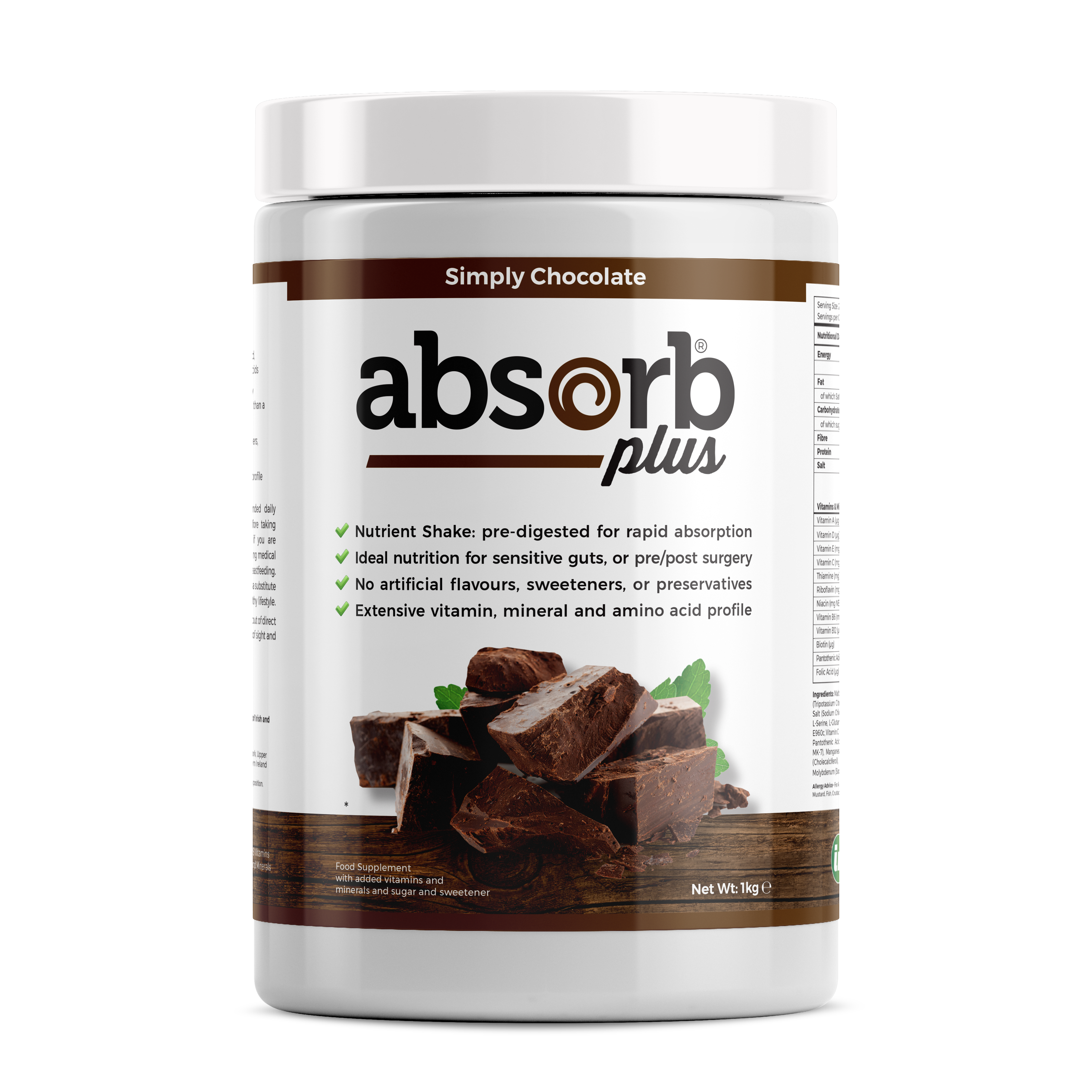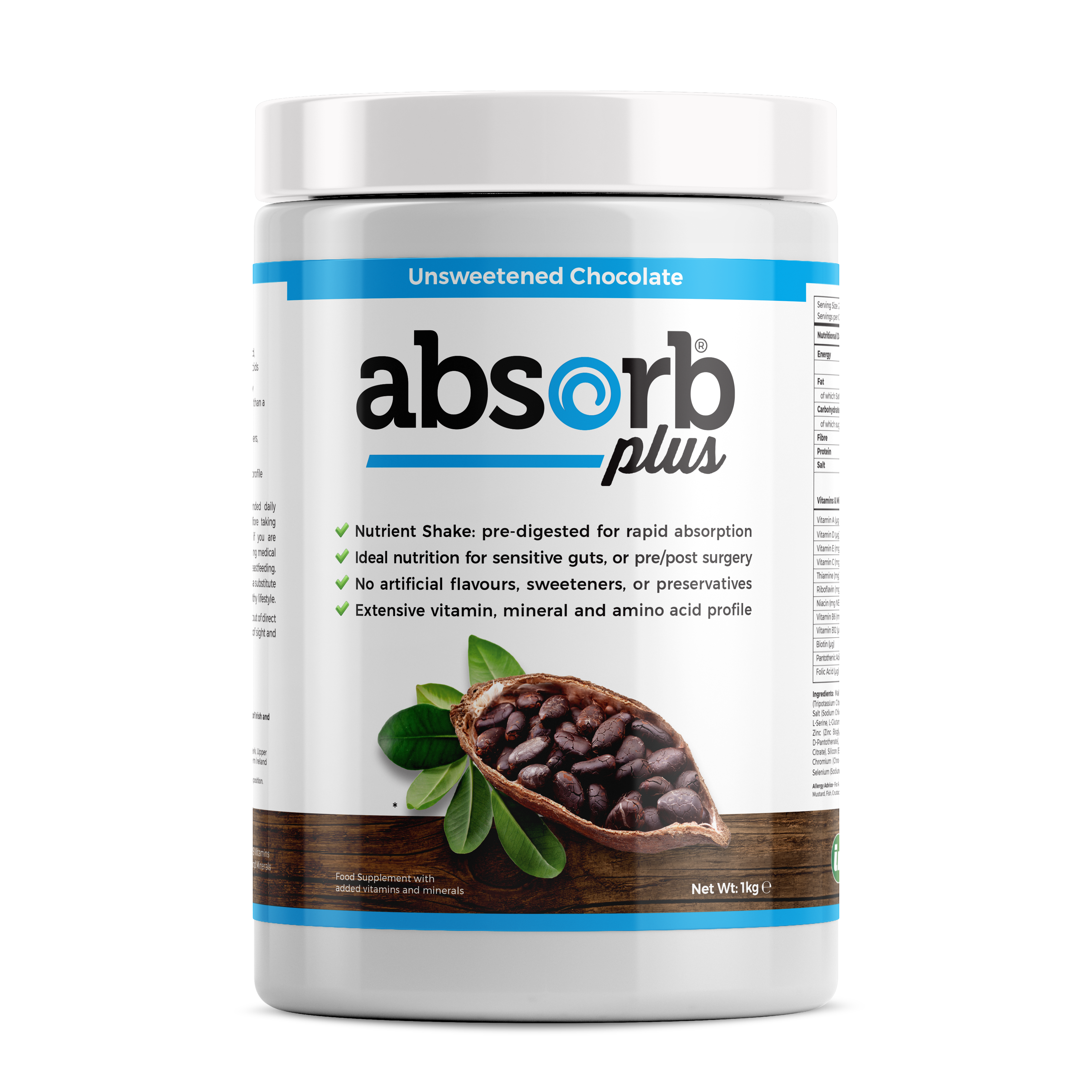 Absorb Plus was formulated by colon and bowel disorder expert Jini Patel Thompson to provide maximum nutrition to help build and strengthen your immune system and allow you to maintain or gain solid weight (muscle, not fat). Absorb Plus provides nutrients, supplements, protein (cold-extracted, lactose-free whey protein isolate) and carbohydrates (tapioca maltodextrin - from cassava root) in the most desirable forms and proportions, and in ratios that allow for optimum use and absorption. This liquid diet protein shake also includes an extensive array of therapeutic free-form amino acids (over 1000 mg L-Glutamine per serving!), with a superior vitamin and mineral profile (including trace minerals). Finally, Absorb Plus tastes so good, you can consume it up to 12 times a day if necessary!