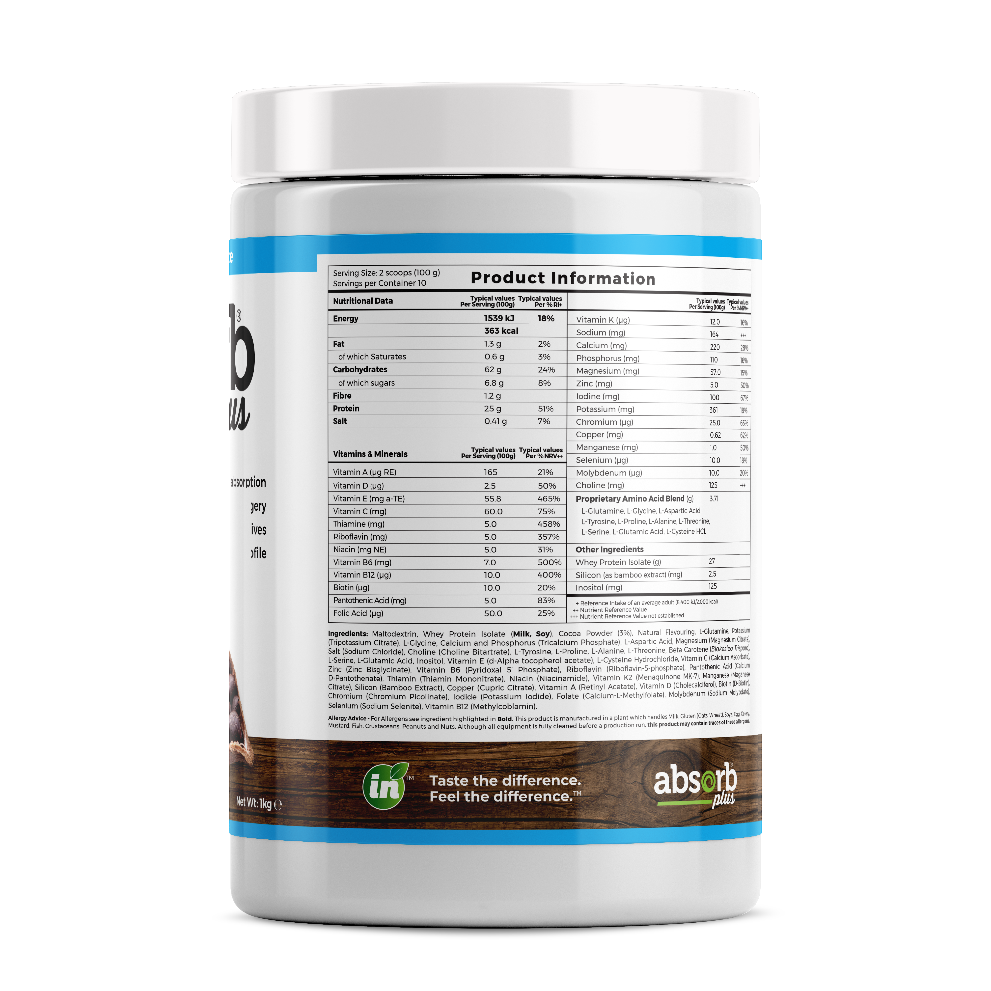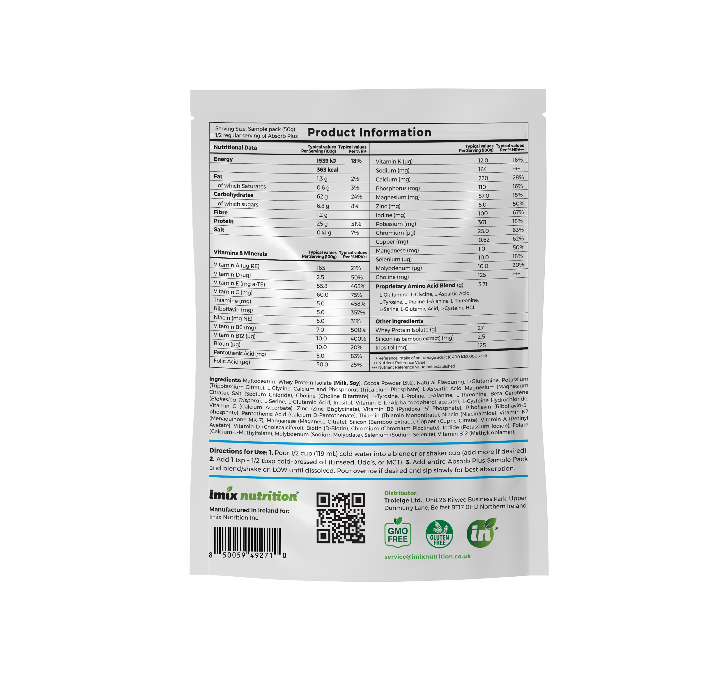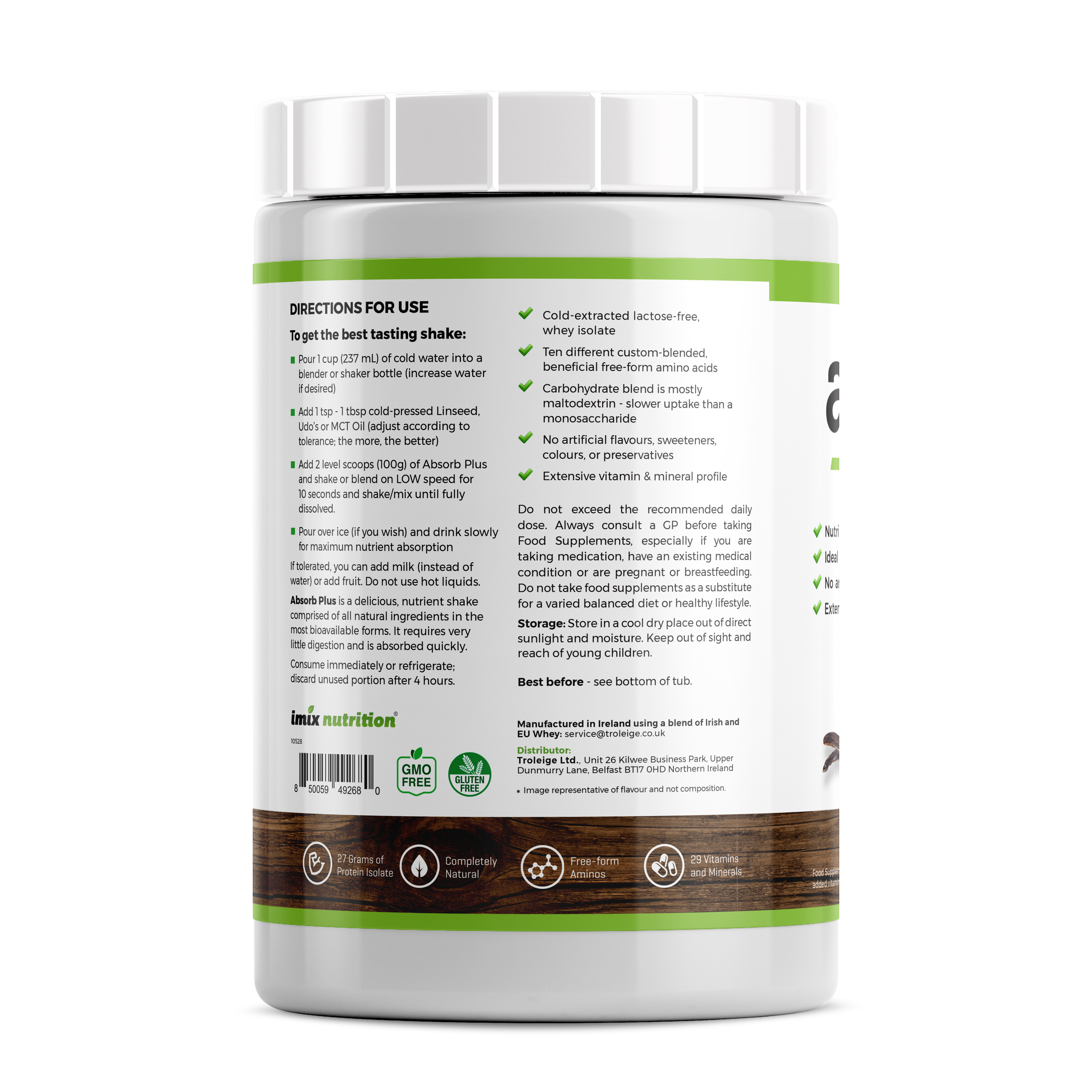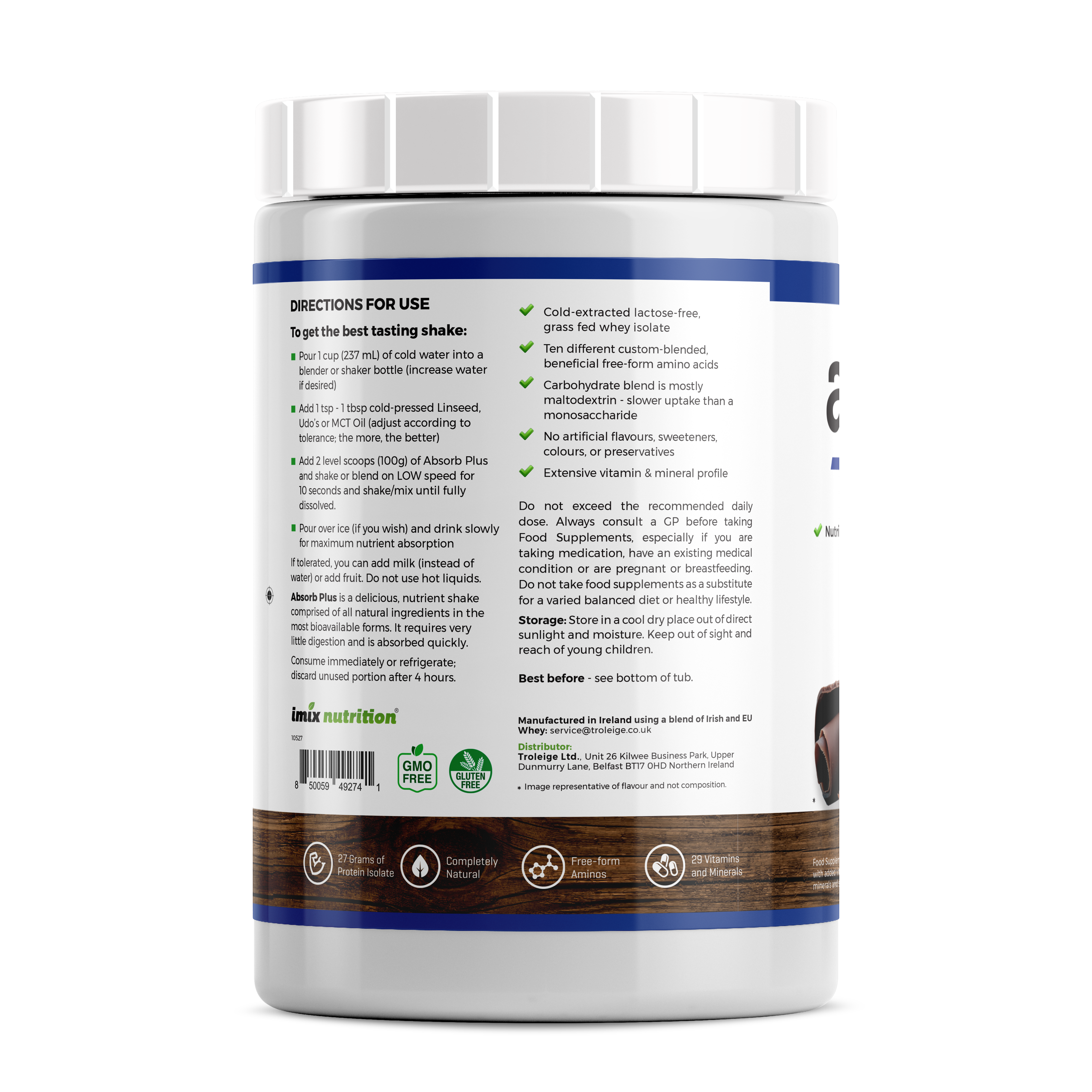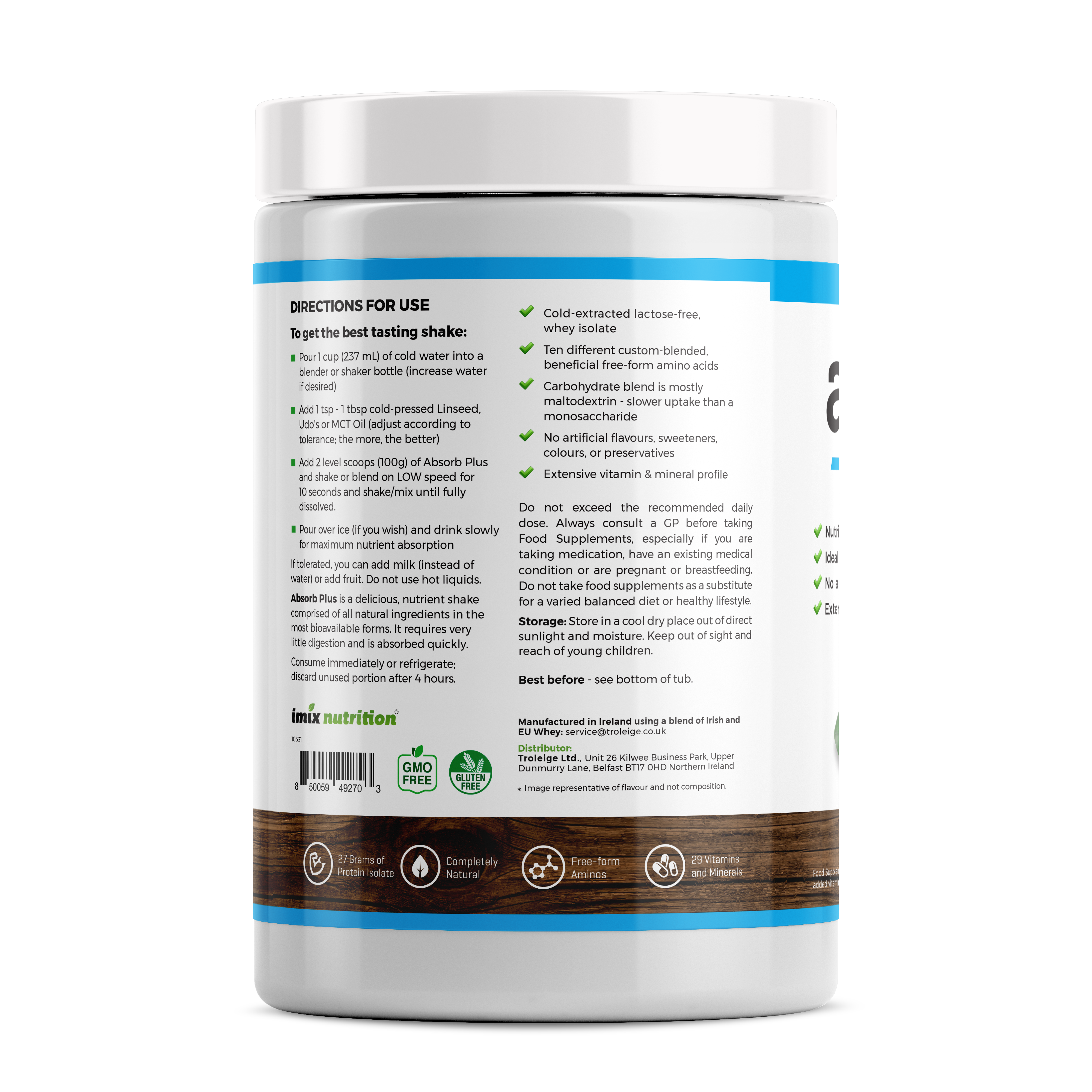 Absorb Plus was formulated by colon and bowel disorder expert Jini Patel Thompson to provide maximum nutrition to help build and strengthen your immune system and allow you to maintain or gain solid weight (muscle, not fat). Absorb Plus provides nutrients, supplements, protein (cold-extracted, lactose-free whey protein isolate) and carbohydrates (tapioca maltodextrin - from cassava root) in the most desirable forms and proportions, and in ratios that allow for optimum use and absorption. This liquid diet protein shake also includes an extensive array of therapeutic free-form amino acids (over 1000 mg L-Glutamine per serving!), with a superior vitamin and mineral profile (including trace minerals). Finally, Absorb Plus tastes so good, you can consume it up to 12 times a day if necessary!