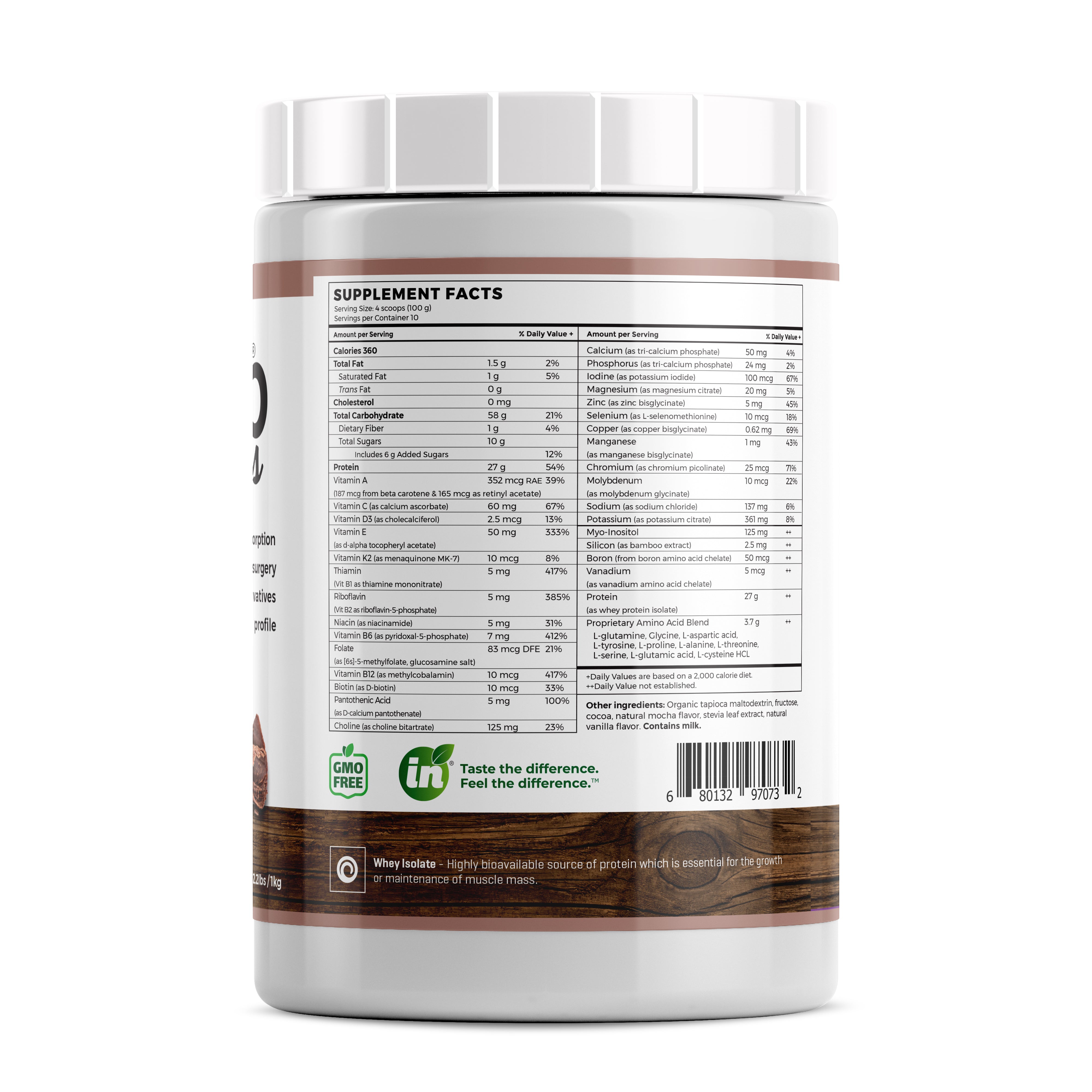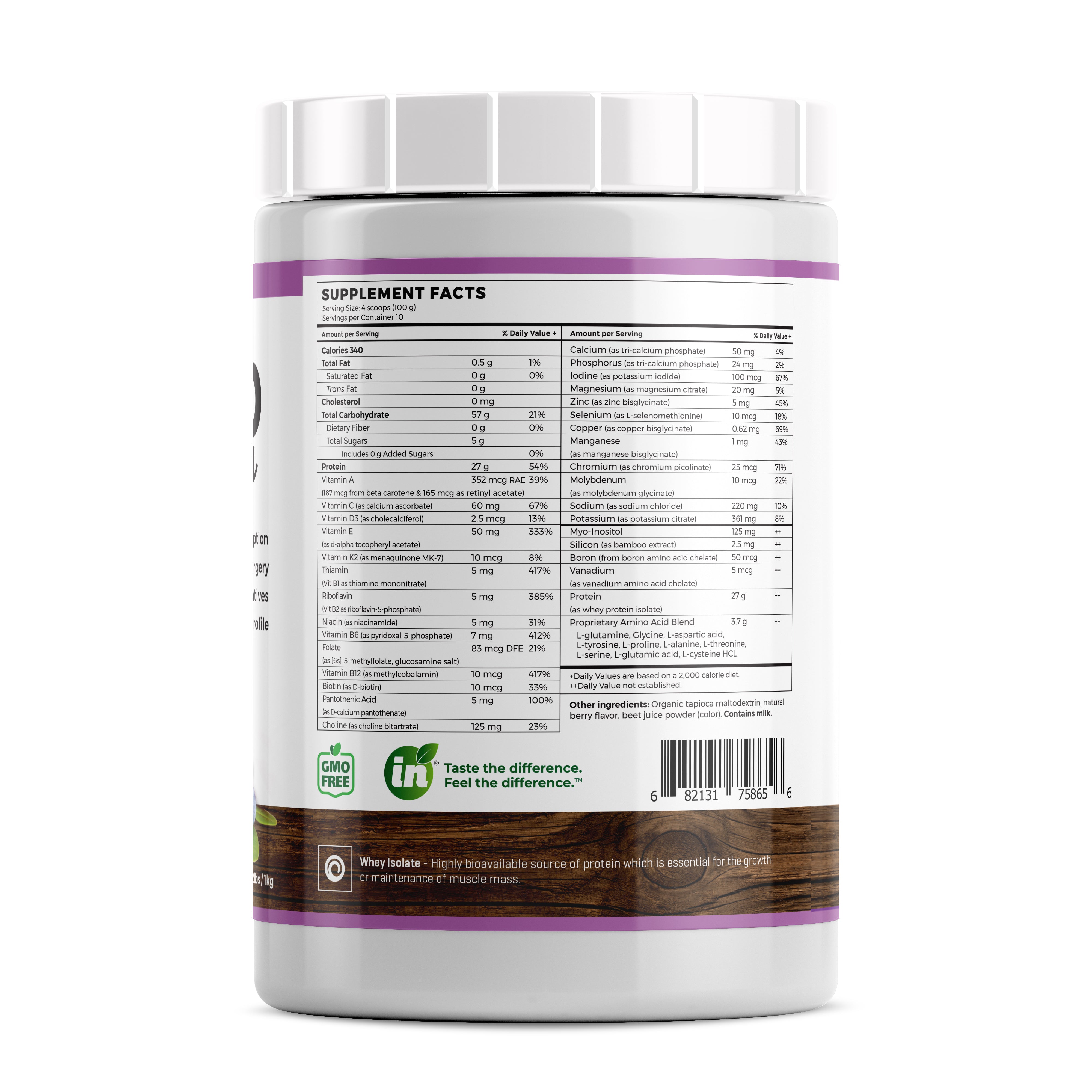 Whey Version includes Cross-flow Membrane Cold-extracted Whey Protein Isolate (casein-free, lactose-free, not denatured by heat)