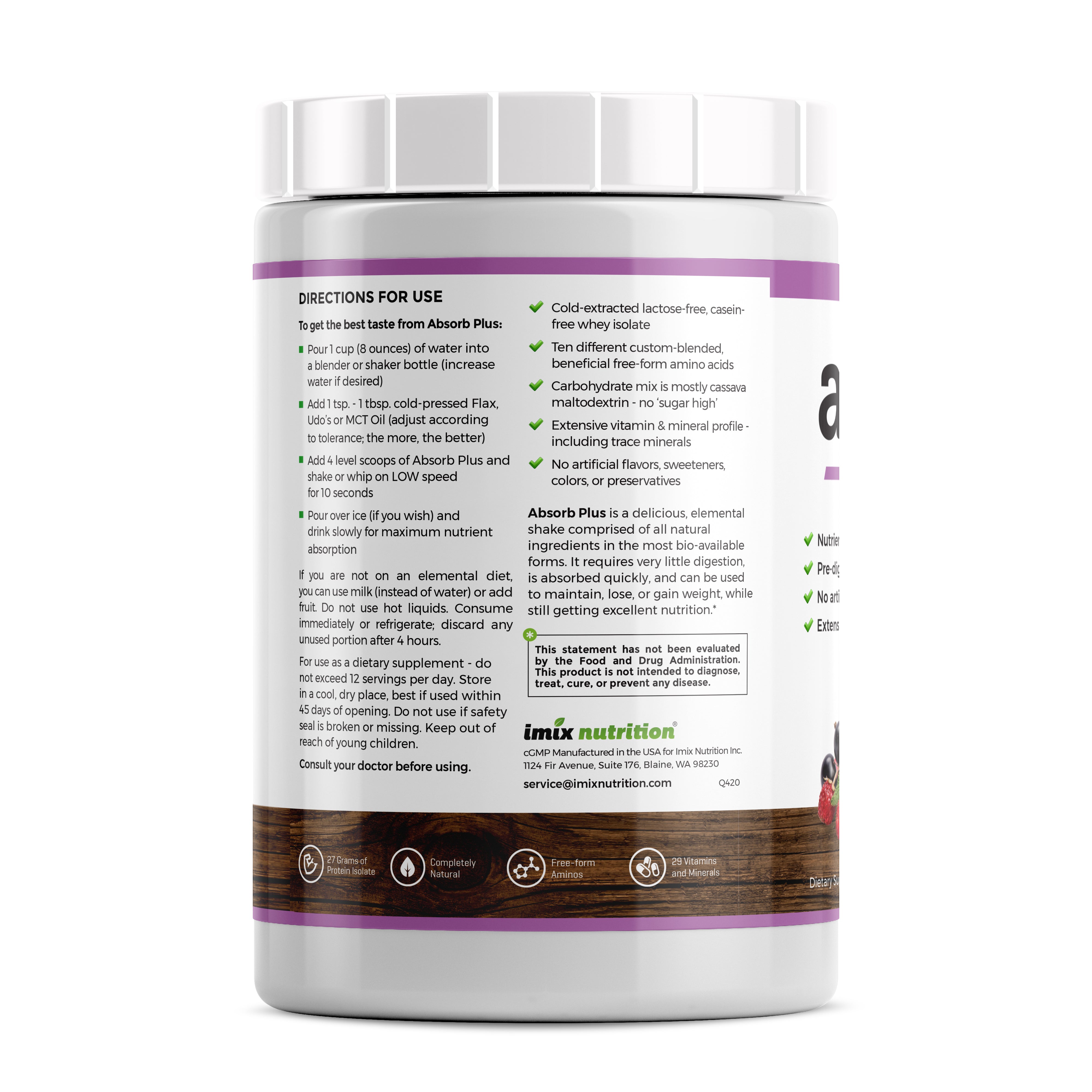 May be used exclusively as part of an elemental, bowel rest diet (reduced fecal matter), or along with other foods as part of a low residue diet, or to provide high quality nutrients in liquid, easily-digested form. May also be used for food clearance or allergy testing. Absorb Plus has been carefully formulated to meet the unique needs of people who have problems chewing, swallowing, digesting or absorbing their food. There is currently NO product on the market that matches Absorb Plus in nutritional value or the extremely high quality of our ingredients.